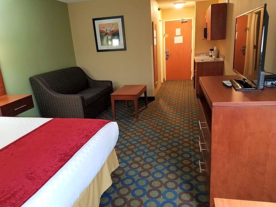 This room includes a 32-inch LCD TV, microwave, refrigerator and wet bar.